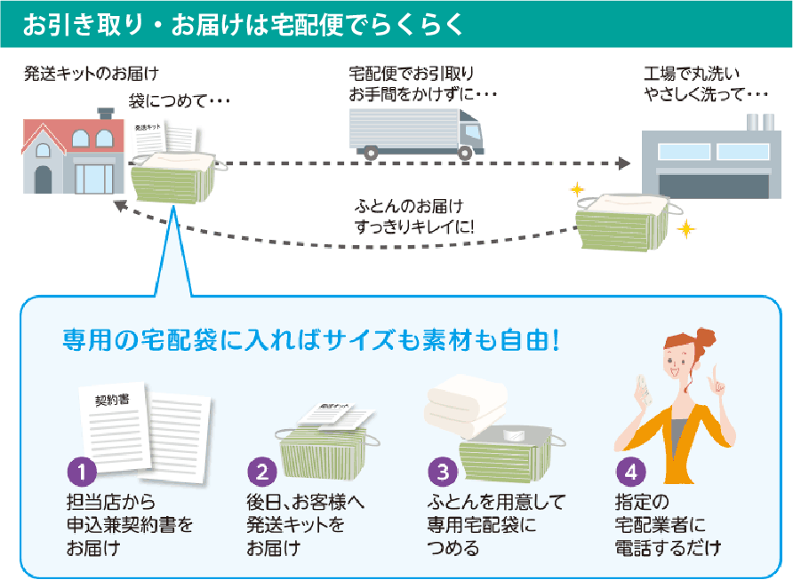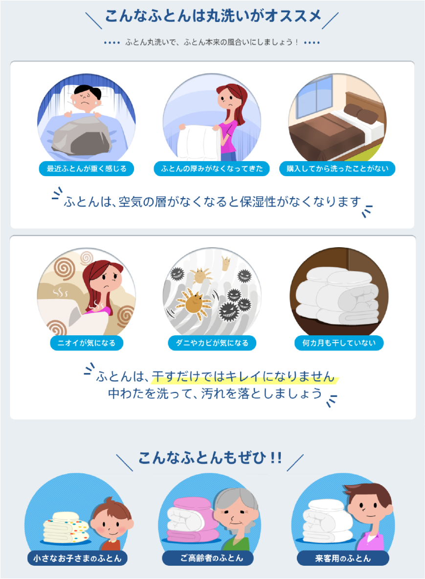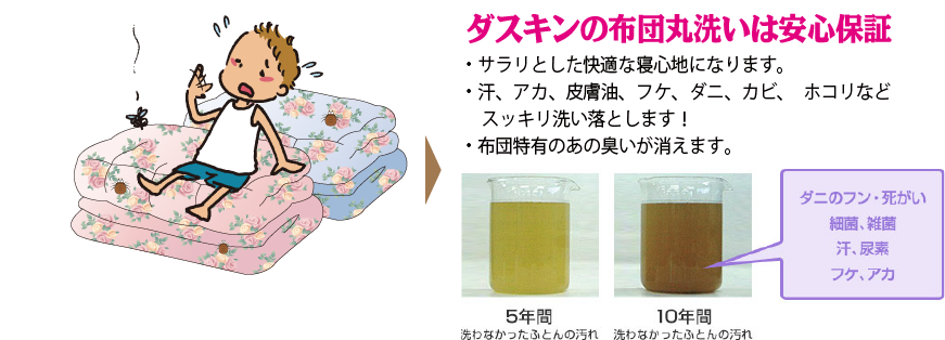 ダスキン下坂部支店のエふとんクリーニングは安心保証と満足保証。お気軽にお電話ください